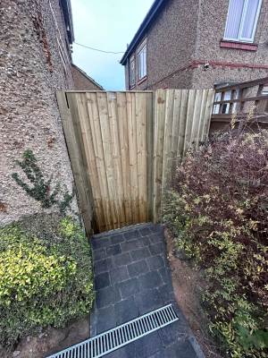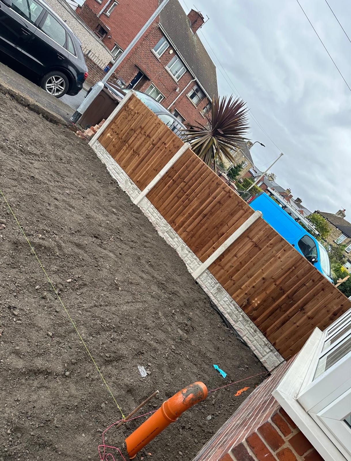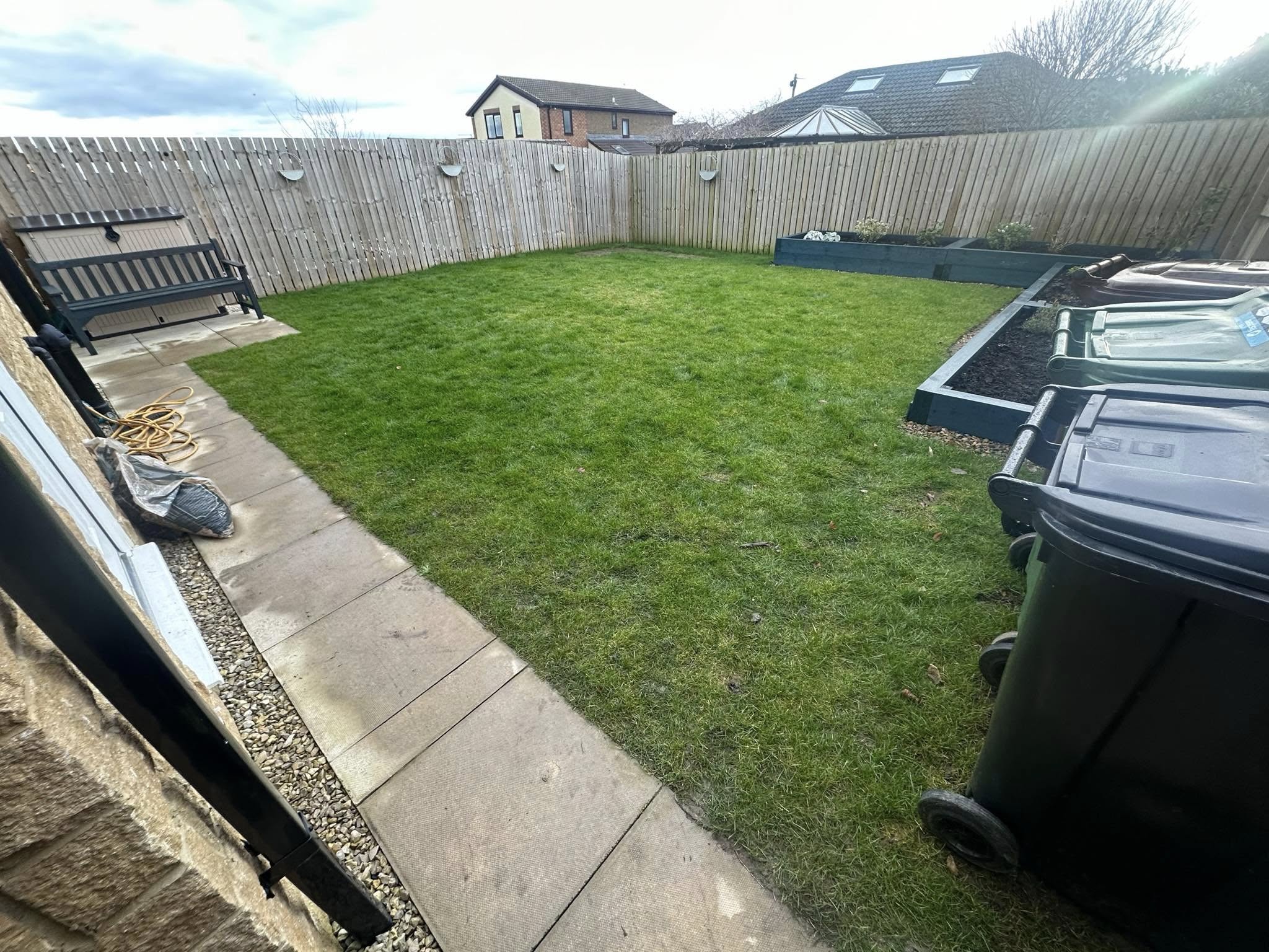Full new walkway area down and around the building, two new artificial grass patches, new fence and sleepers.