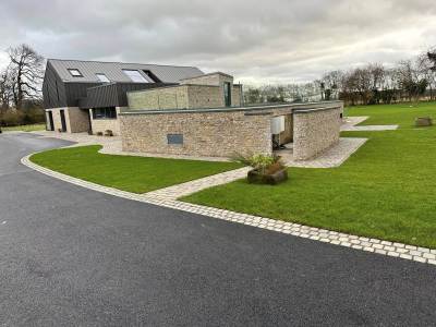 Every square inch of the property covered with over 6000sm of turf, over 150sm in 100x100 cobbles, over 550sm of natural stone sets. 350sm of porcelain, and around 700sm of tarmac.