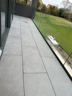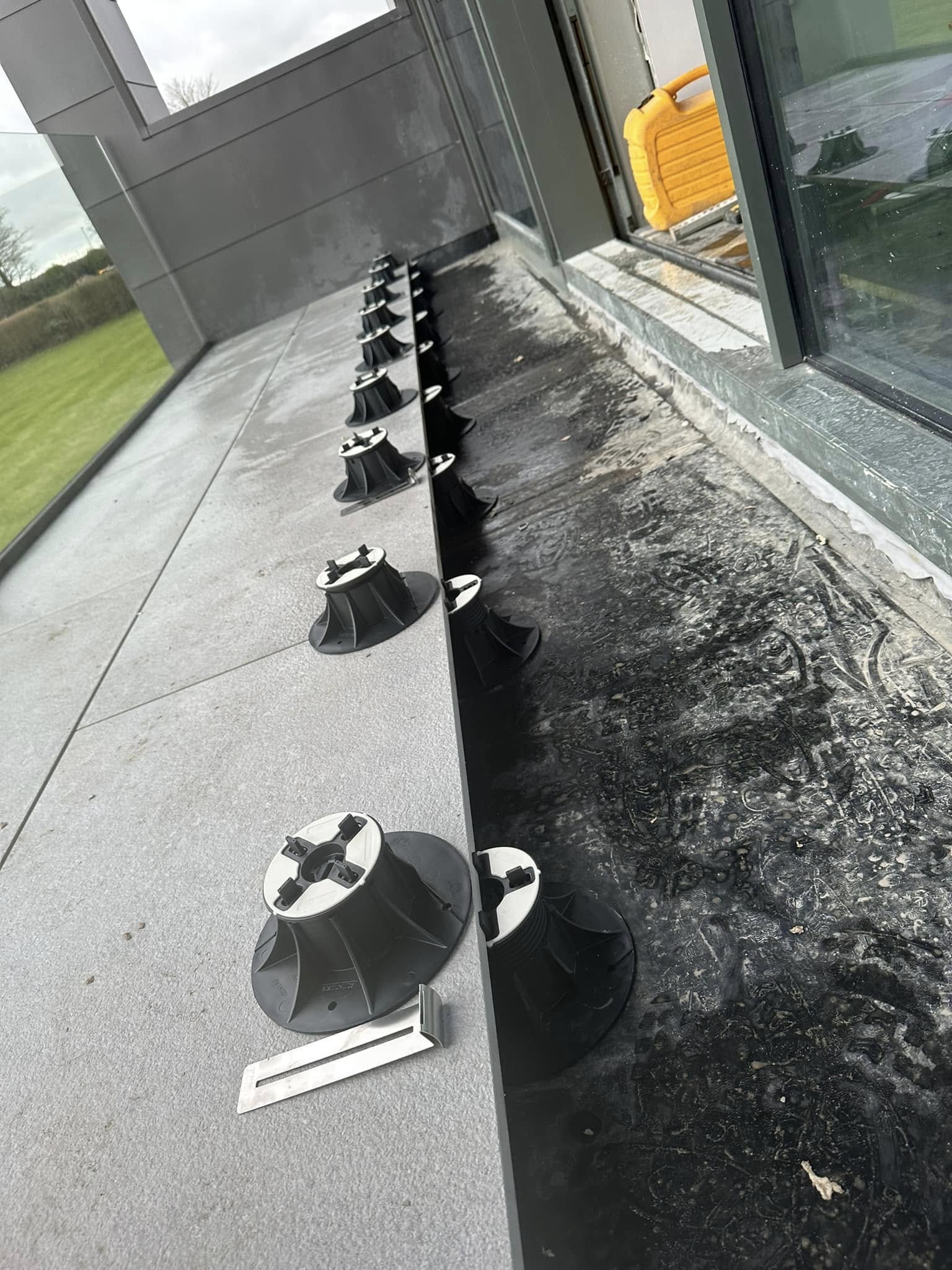 With angled sleepers, finished with the grey sandstone finish and a eco drain fitted.
