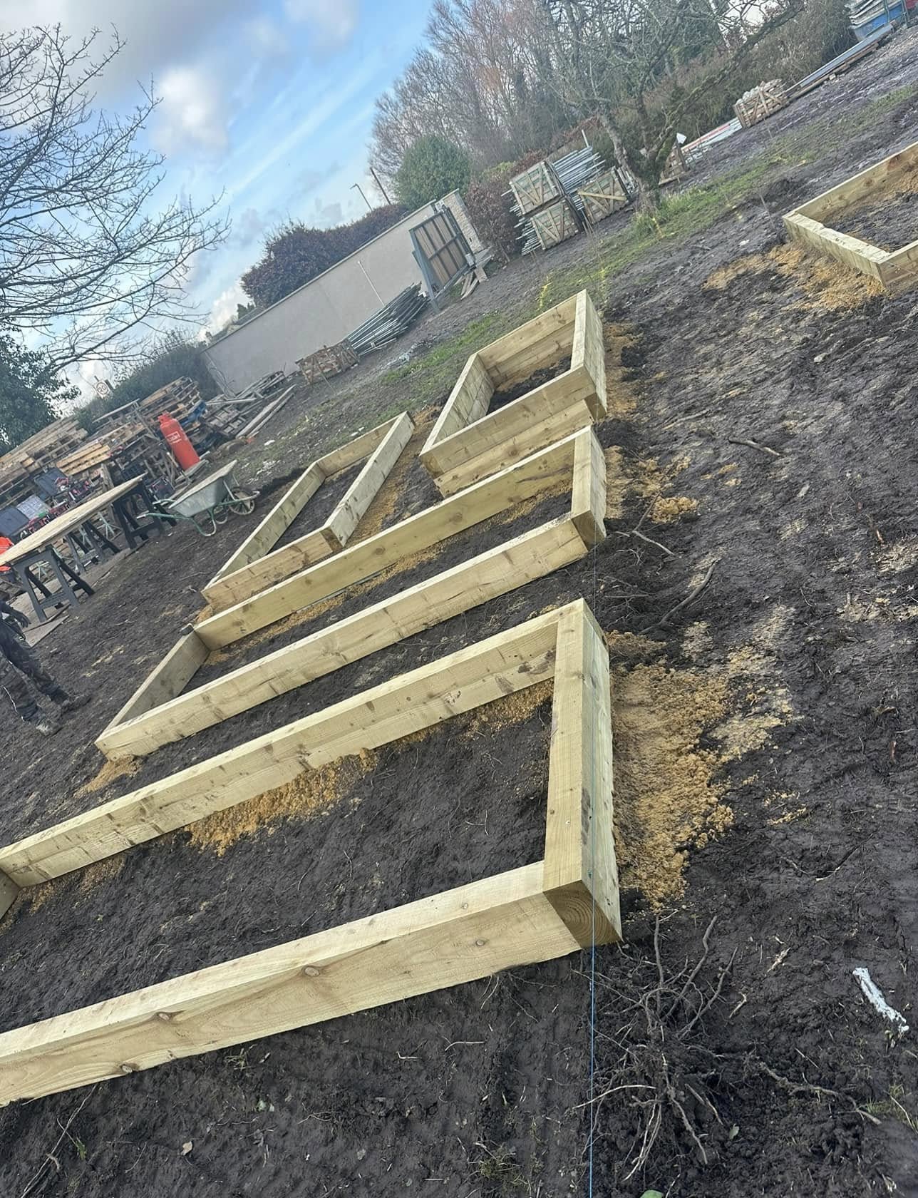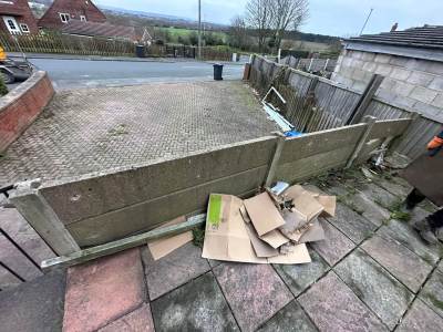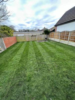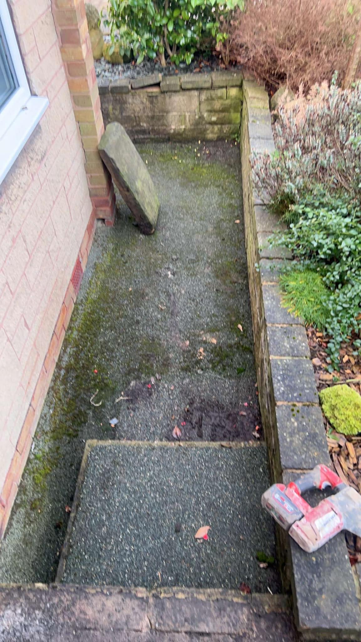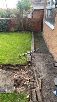 Full new walkway area down and around the building, two new artificial grass patches, new fence and sleepers.
